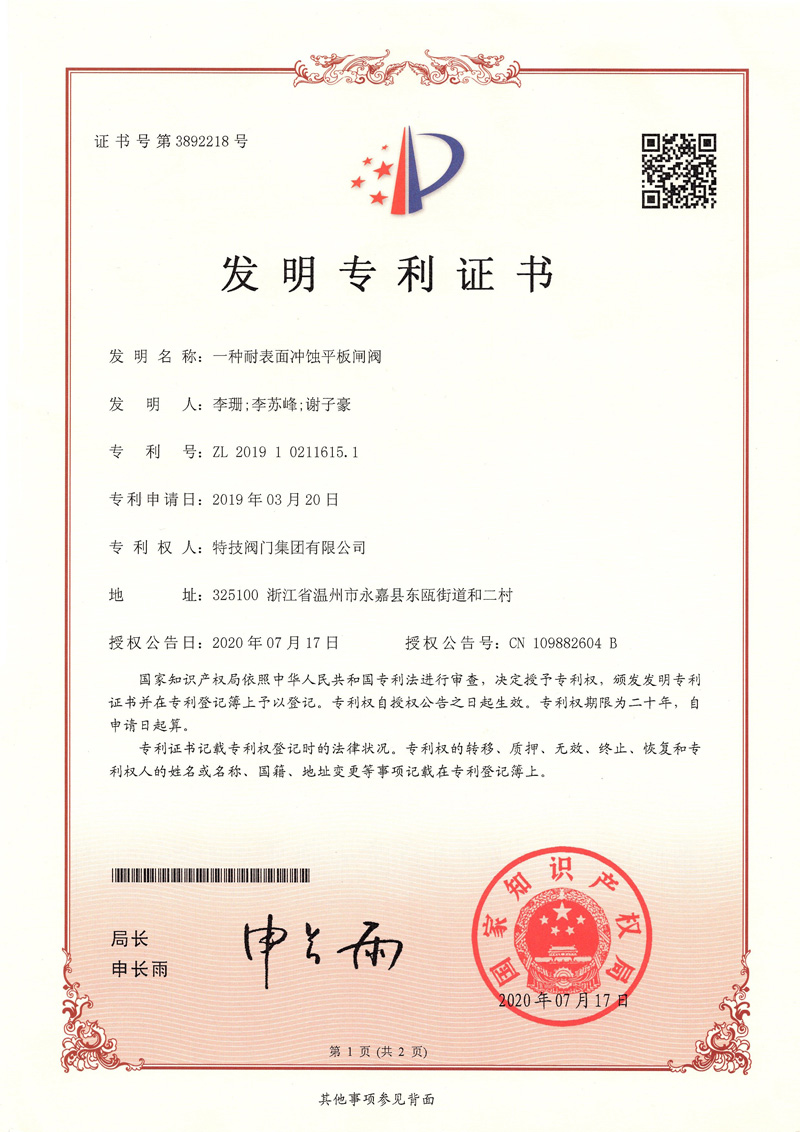 一種耐表面沖蝕平板閘閥
